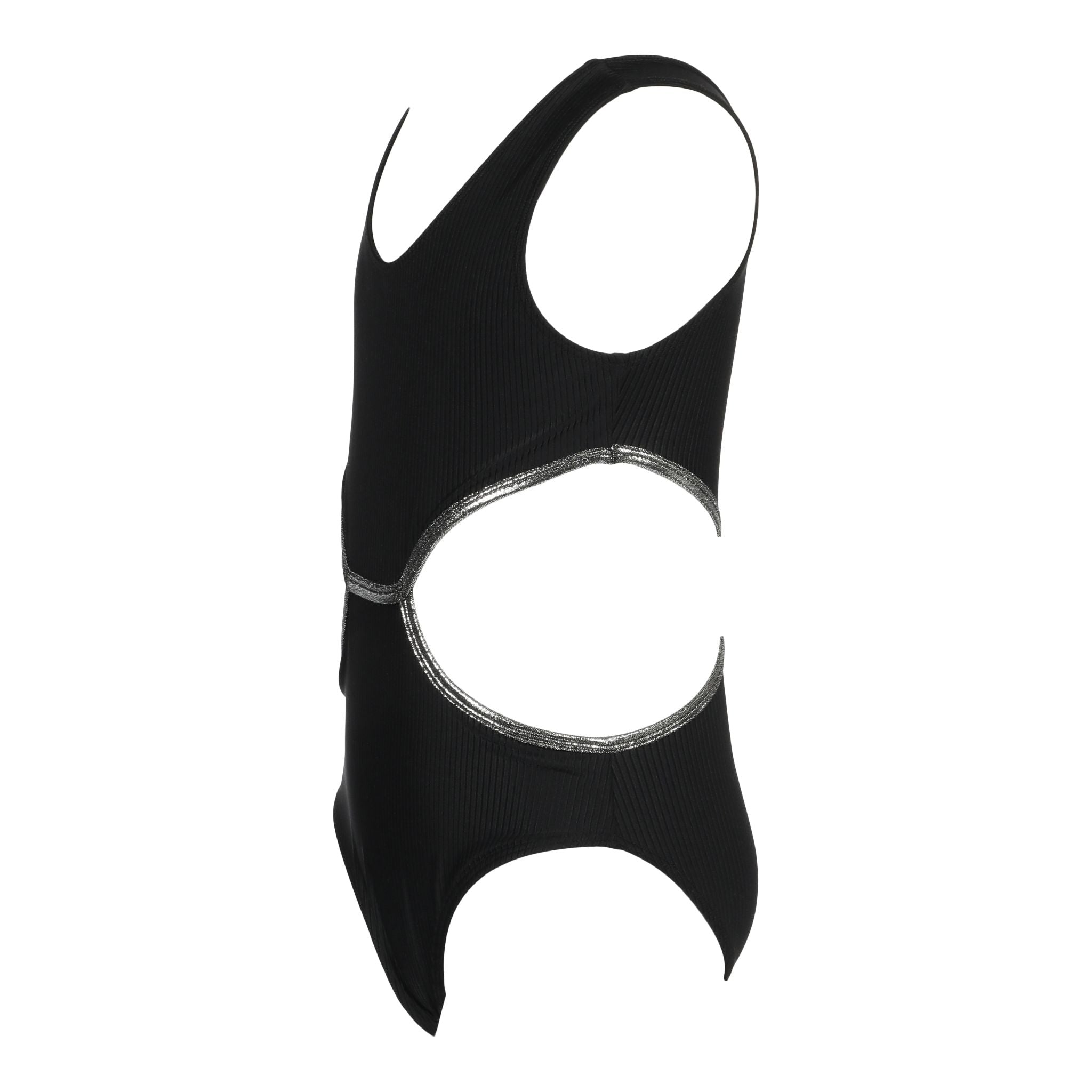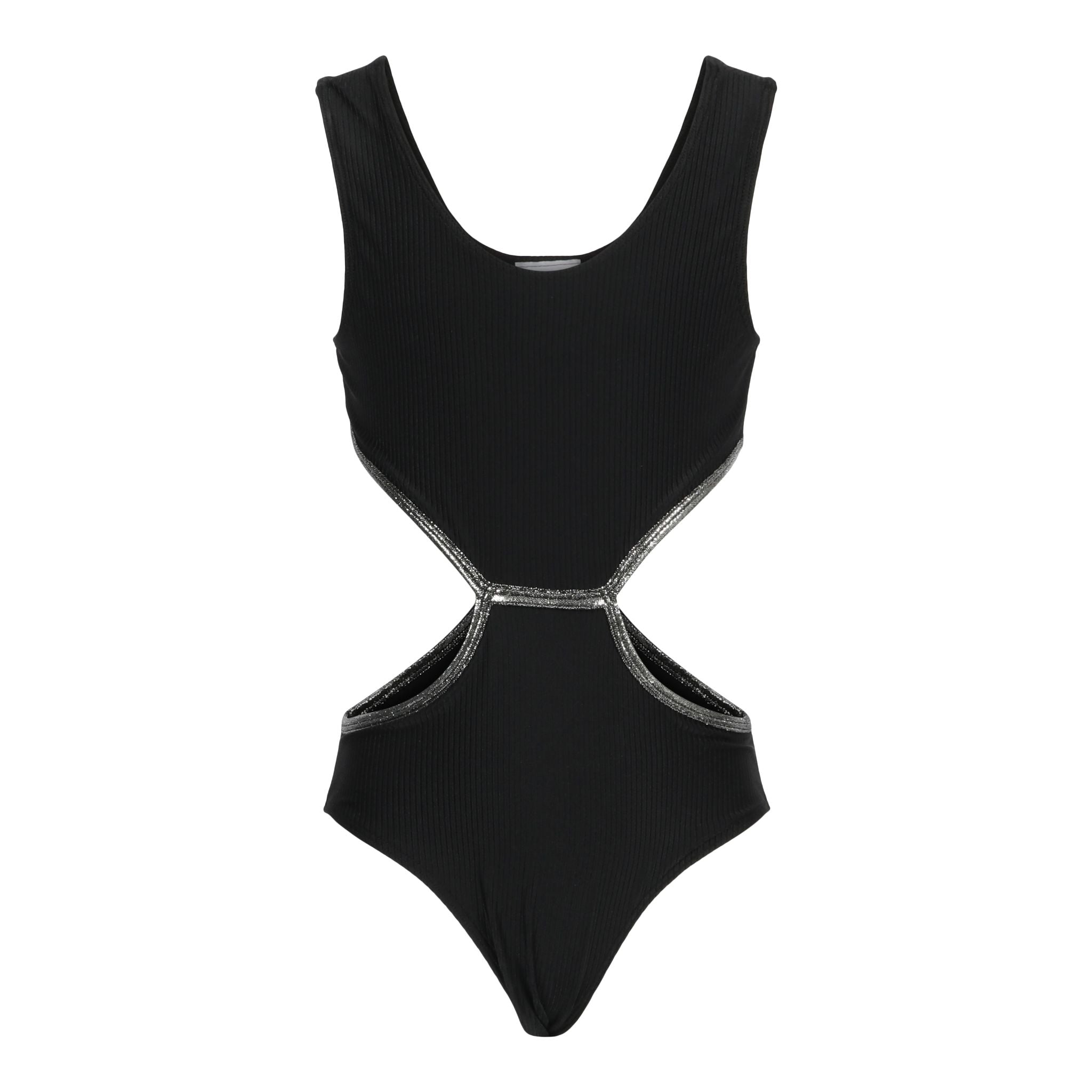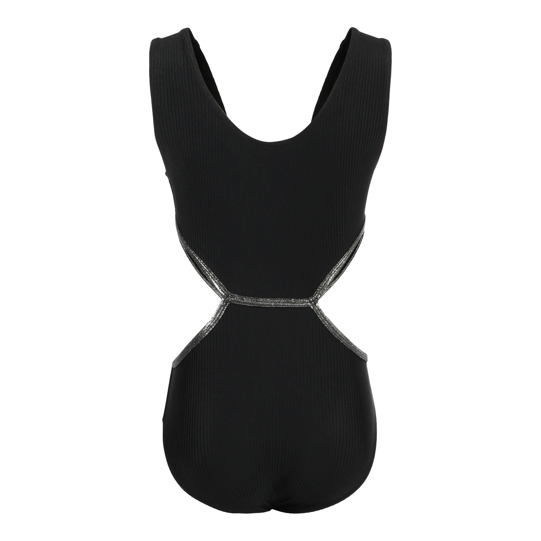 1pc Rib Cut Out Silver Trim Bathing Suit